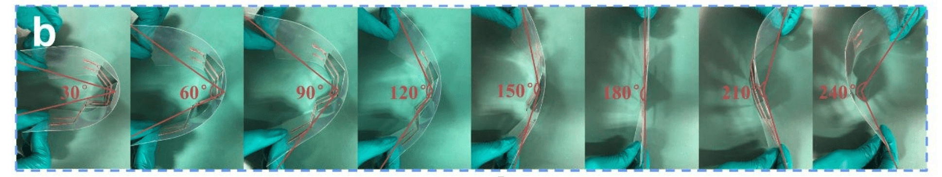 This ability of SEG to bend at different angles without losing its working property demonstrated that the designed SEG array has certain flexibility which makes it possible for wearable applications.