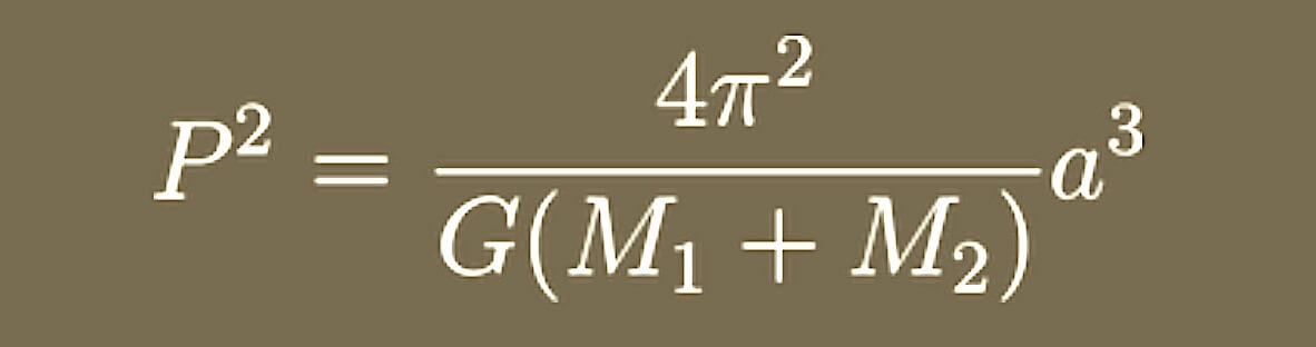 where M1 and M2 are the masses of the two orbiting objects in solar masses. Note that if the mass of one body, such as M1, is much larger than the other, then M1+M2 is nearly equal to M1. In our solar system M1 =1 solar mass.