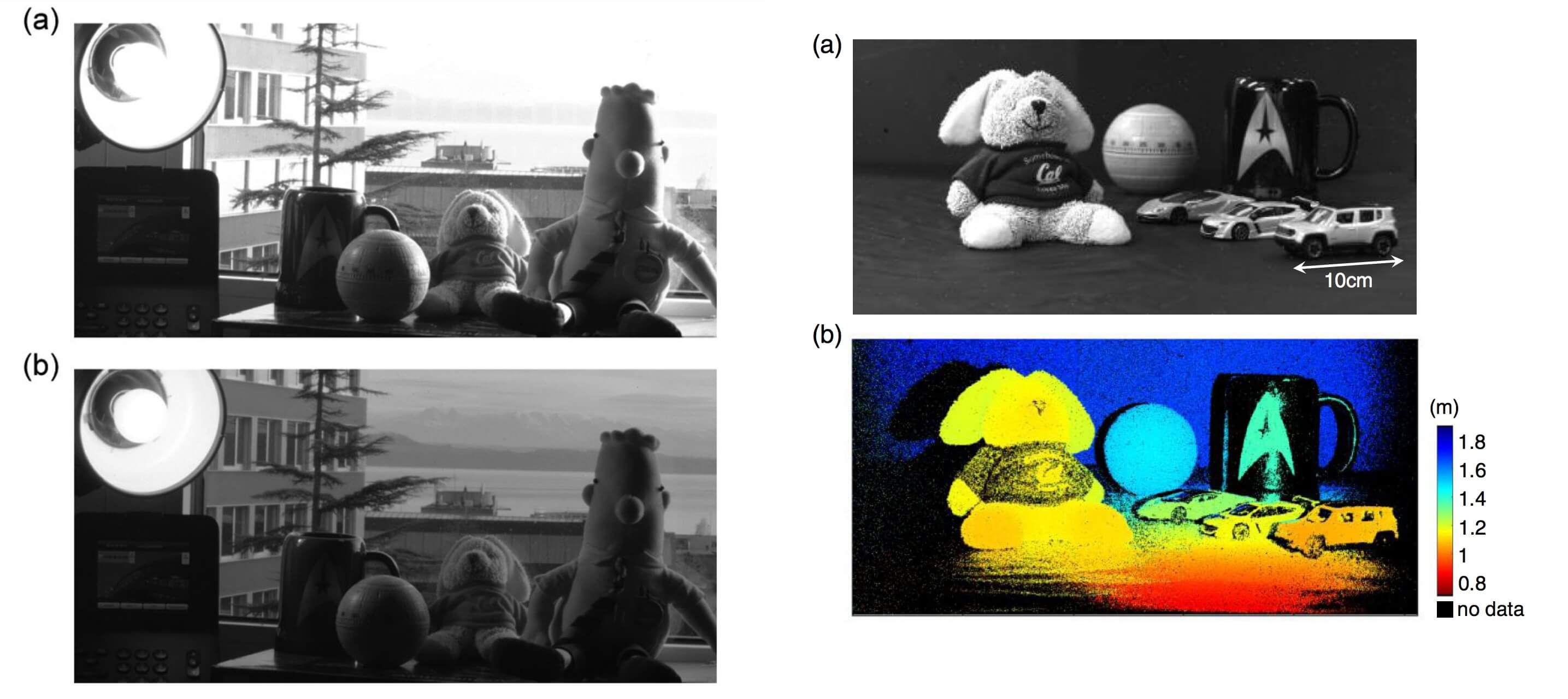The researchers used the new camera sensor to determine the time-of-flight of photons emitted from a laser source and reflected by a target. They also captured complex scenes that are difficult for other imaging techniques to measure, such as an object viewed through a partially transparent window, and they used the camera to acquire conventional pictures with unprecedented dynamic ranges. In future, they plan to further improve the performance and timing resolution of the camera and to further miniaturize the components to make it more practical for a variety of applications.