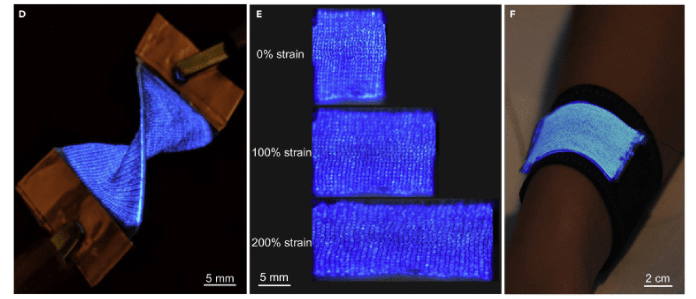 The end result stated by the research team was that they were able to design a soft, lightweight, thin, wearable material that glowed even when stretched by as much as 200%.