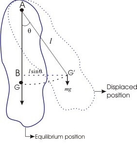 As the angular acceleration is proportional to angular displacement, the motion of the compound pendulum is simple harmonic and its time period 𝑇 is given by