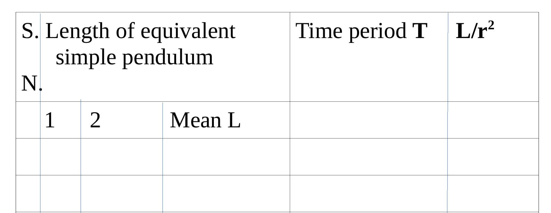 By determining L, 𝑙1, and 𝑙2 graphically for a particular value of time period (T), the acceleration due to gravity g at that place and the radius of gyration K of the compound pendulum can be determined.