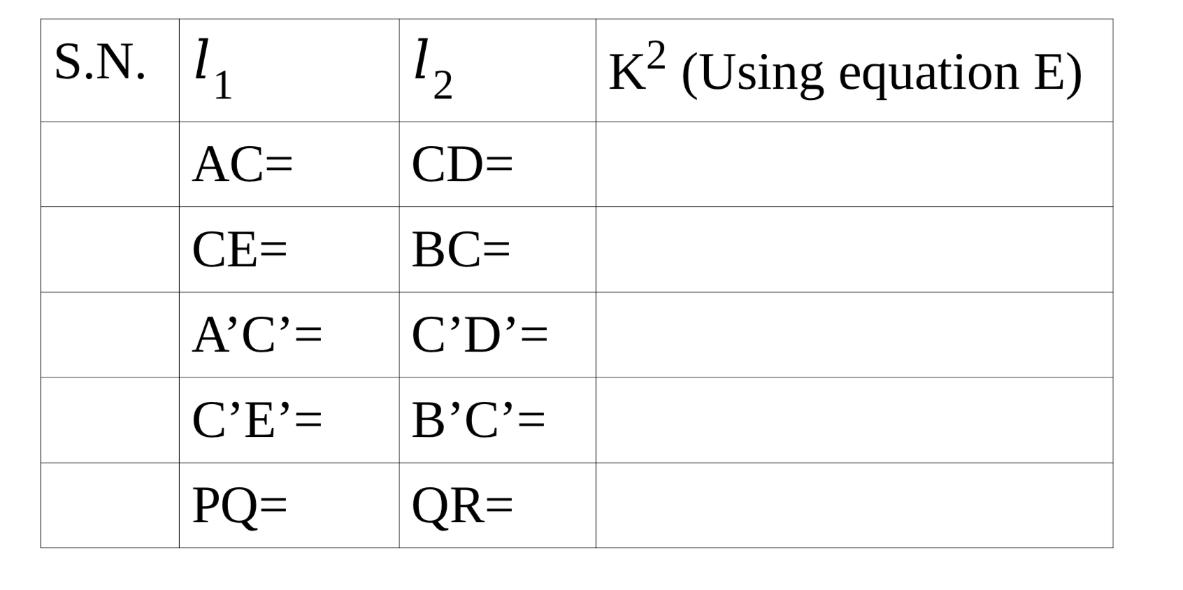 K2 = 𝑙1𝑙2 ----------------equation (E)