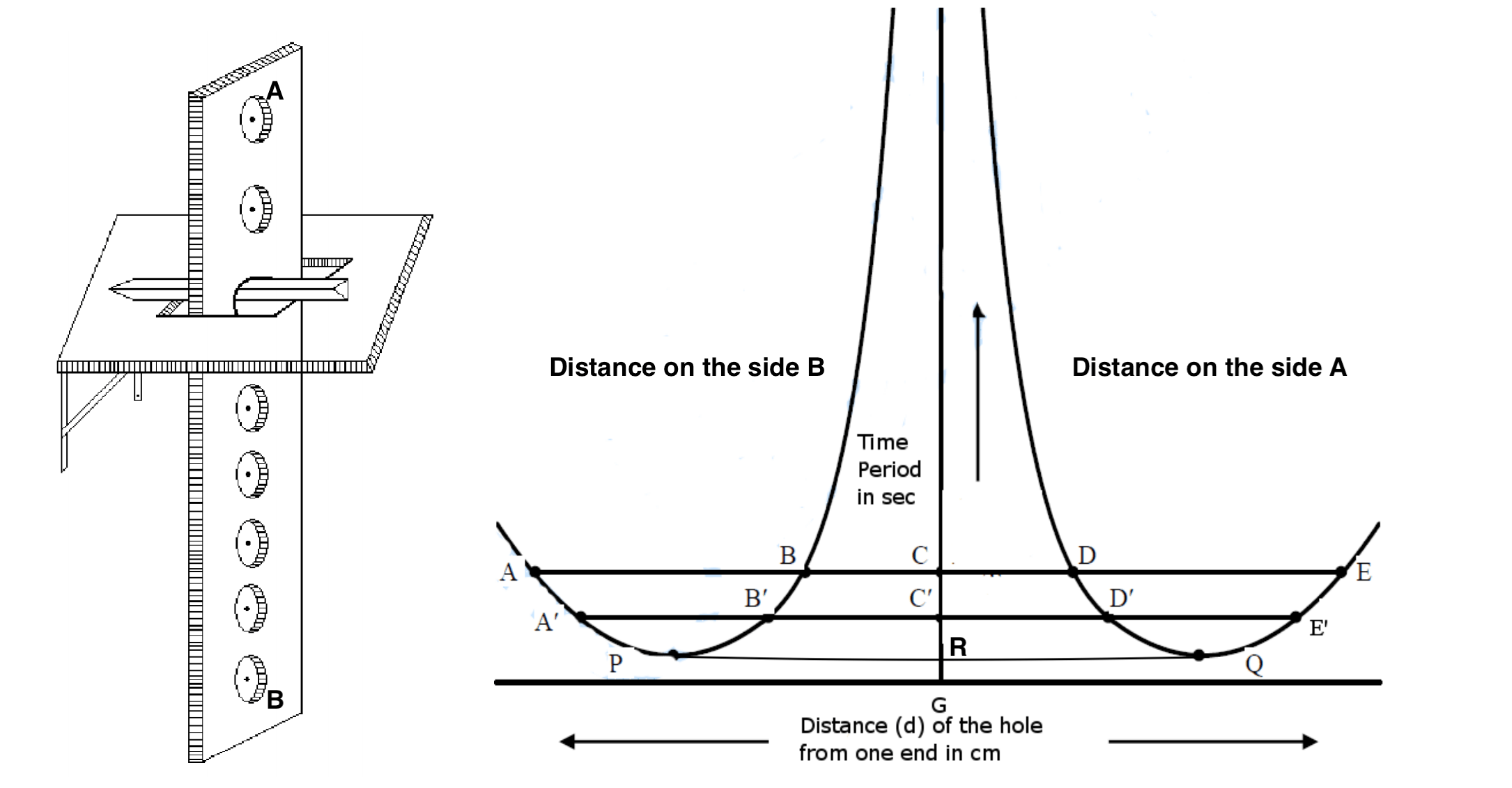 Now suspend it in the knife-edge on the side B and repeat the same observations as above.